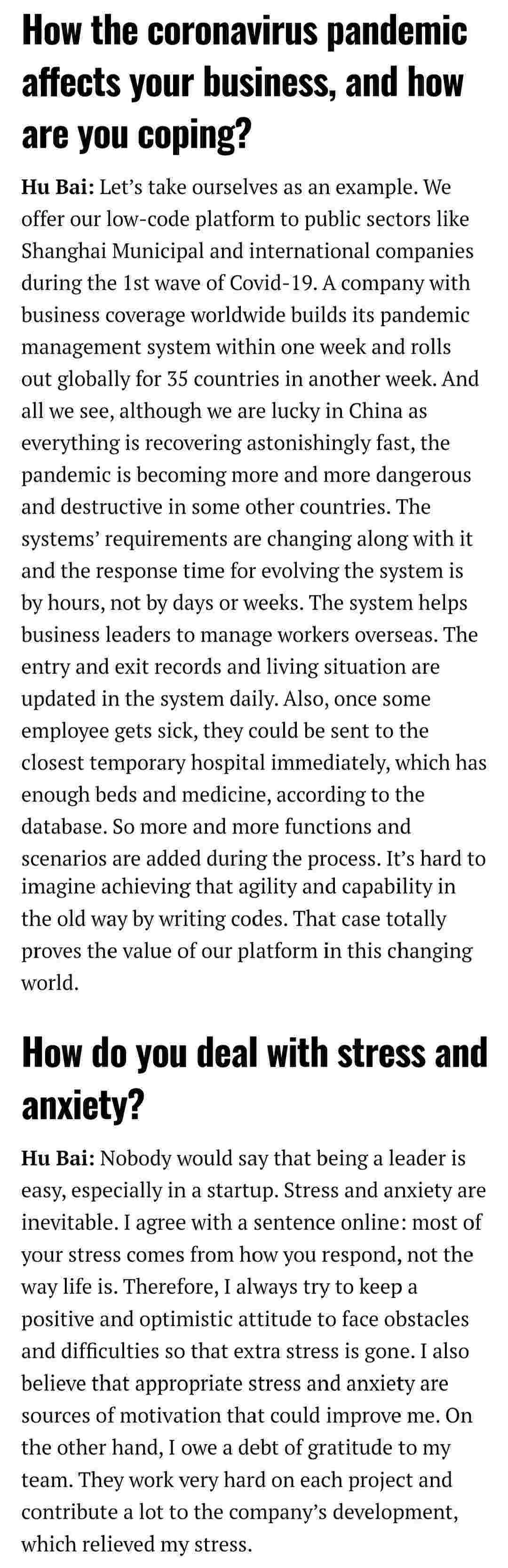 2021年年初,,,,,,,,,,,,,爱湃斯科技CEO胡柏受邀接受法媒Startup.info的专访,,,,,,,与Startup info的读者分享了自己的创业经历、、、、、、、、、、、、以及低代码平台VIVO钱包的创新之处。。。。。。