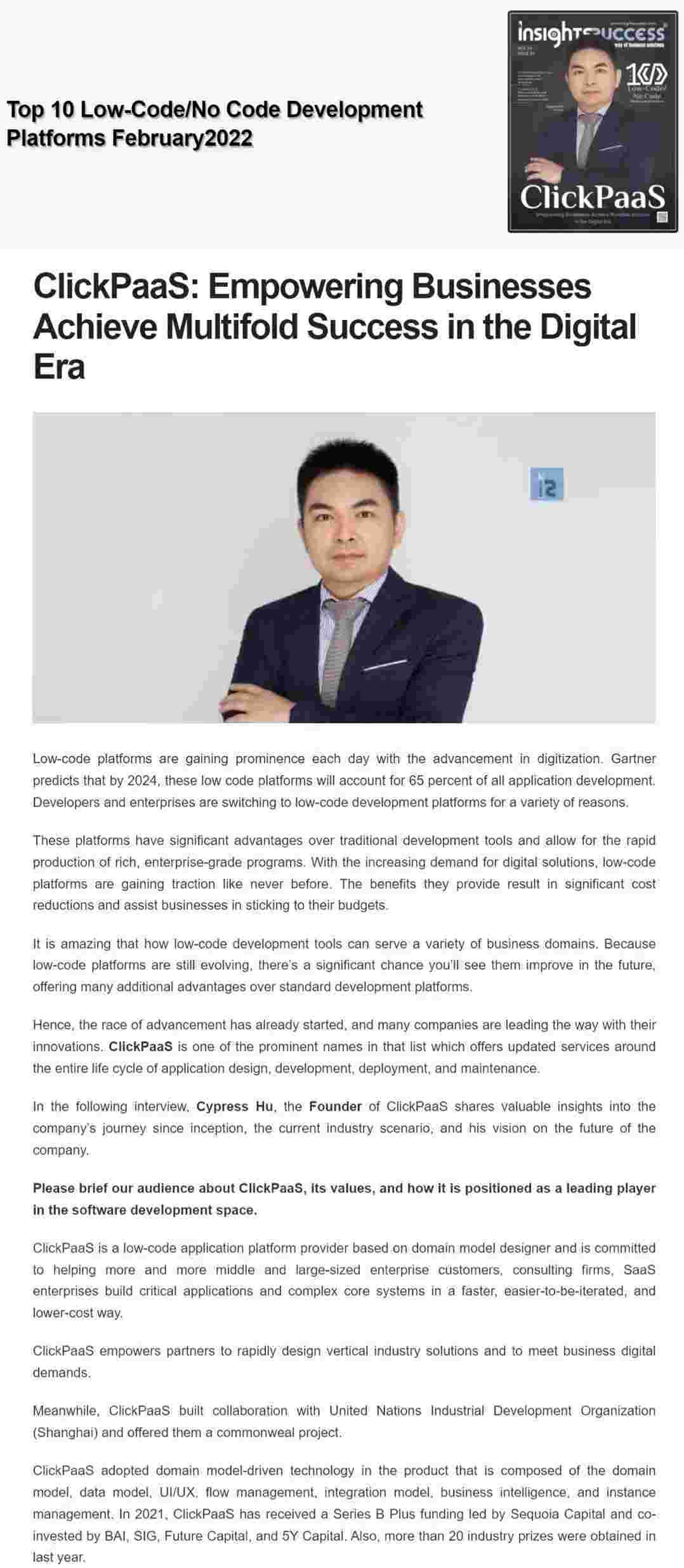 2022年年初,,,,,,,,,,VIVO钱包入选外媒Insights Success低代码/无代码开发平台 Top10,,,,,,,,,,,创始人、、、、、、、、、、、CEO胡柏受邀接受专访并荣登封面人物,,,,,,,,,,,他与Insights Success的读者分享了VIVO钱包成立的初心、、、、、、、、发展历程、、、、、、、、、当前的行业发展趋势以及他对公司未来的展望。。。。。。。。。。。。